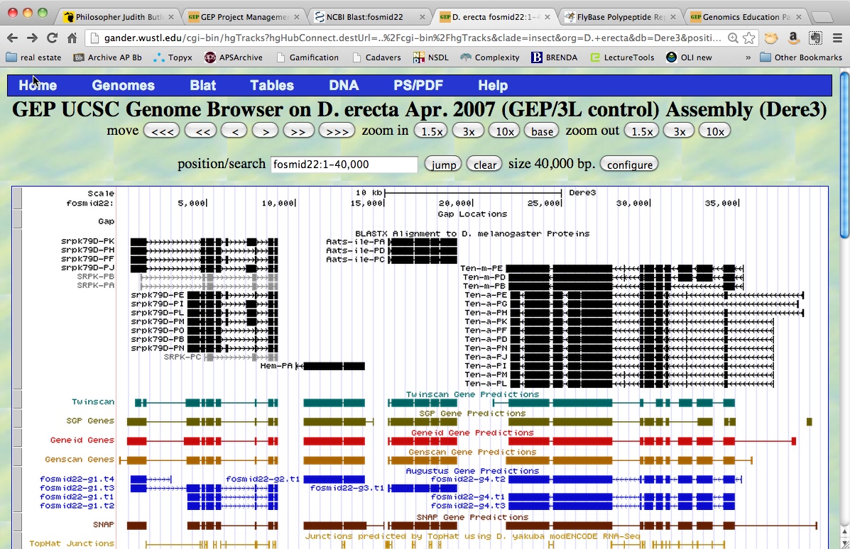 Today we started officially the second part of the workshop. In the morning we had some free time to practice annotation, which was good. While there is still a long way to go, I could feel that I was getting more comfortable with the thinking behind the analysis, and my speed was hampered only by not remembering which link I had to click on to get the DNA sequence, or the predicted sequence, or whatever piece of information needed. The consensus of the group was that students will need some intense and extensive time to learn the system.