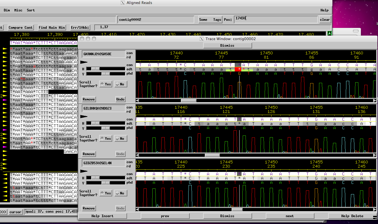 That pride came rushing back today when we were introduced to Consed, one of the programs dedicated to sequence finishing. It needs to be started from a terminal window typing commands, so we received a short intro about Unix, and I felt pleased that I knew how to do it. It is one of those examples of pieces of knowledge acquired along the way of life.